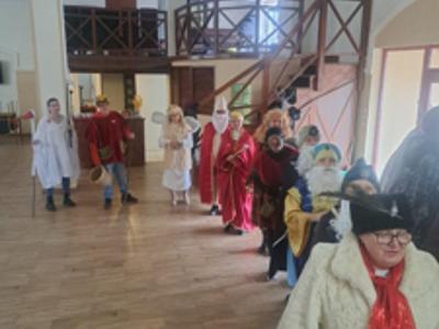 Karnawał borowiacki – Trzej Królowie i kolędnicy w klubie Senior+, w Wielkim Mędromierzu 4 luty 2025 r.