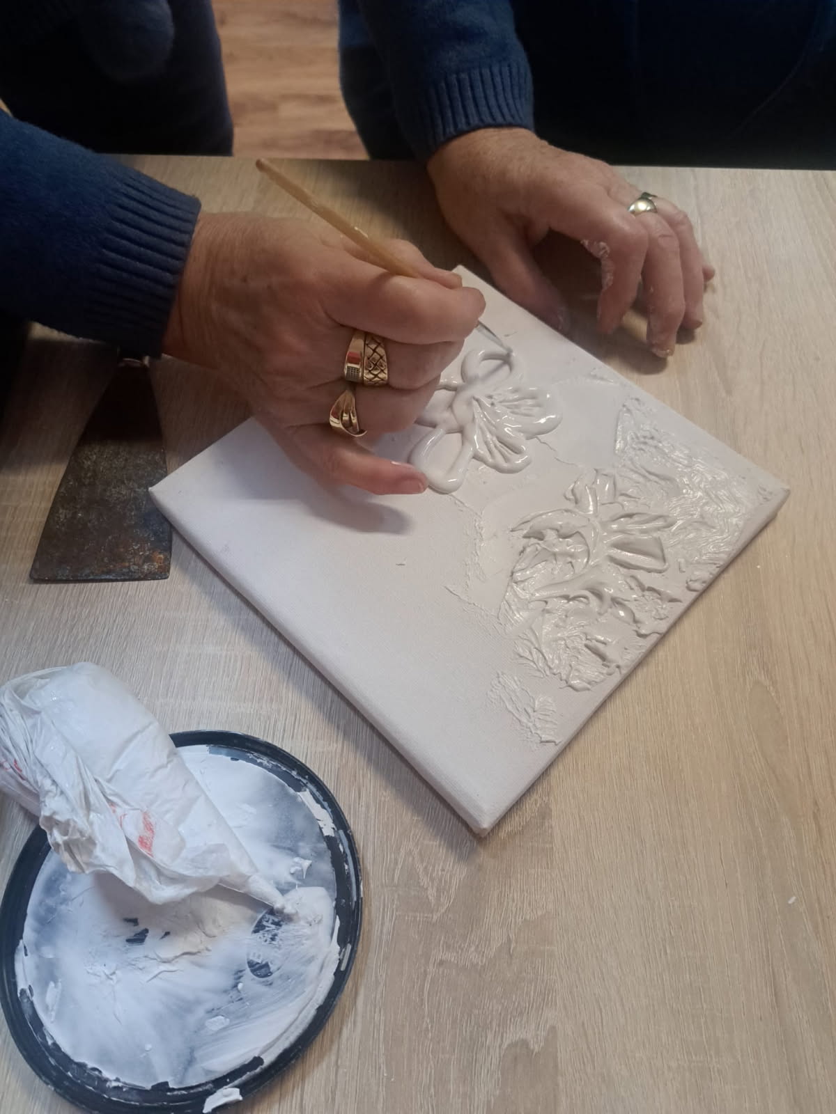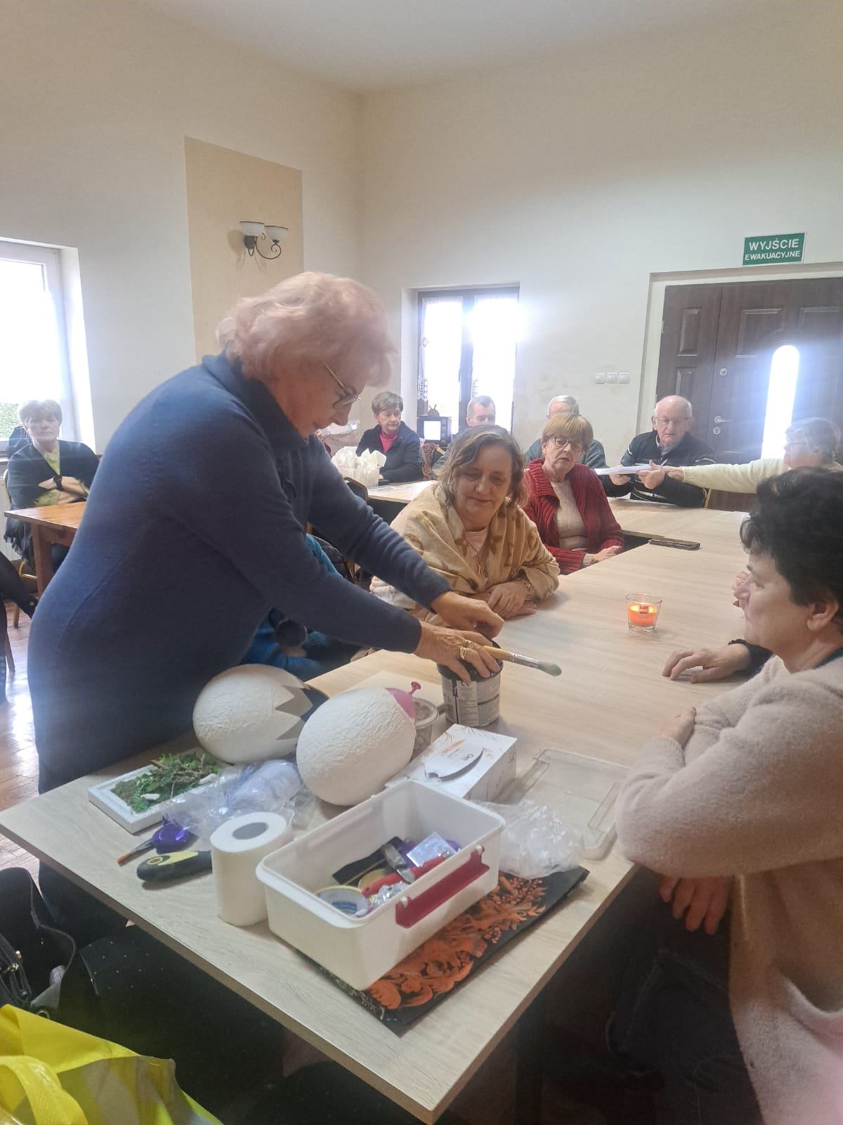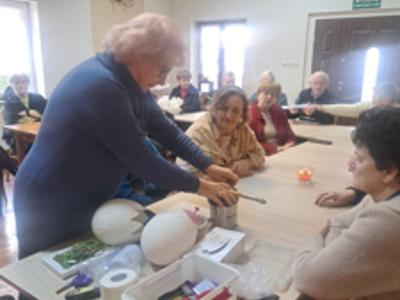 W Klubie rozpoczęły się również zajęcia, które wpływają na wiele aspektów osobowości, rozwijają twórczość, indywidualność, spostrzegawczość i rozwój zdolności manualnych, wzbogacają osobowość, pozwalają wyrażać własne myśli i uczucia - mając wpływ na odczuwane emocje. W ramach warsztatu Seniorzy poznają techniki malarstwa, decupage, filcowanie, bibułkarstwo, sutasz i inne. Wykonają prace, które ozdobią siedzibę klubu i stoły podczas Świąt Wielkanocnych. Zajęcia prowadzi specjalista i artystka – nauczyciel plastyki- Pani Łucja Ryszkowska. Wszystkim radości życzymy, i „co by nas chorości omijały”.