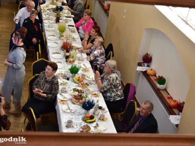 Całość warsztatów zakończyła się muzykoterapią pt.:”Niech żyje bal…..”. Seniorzy podczas biesiady zaprezentowali tańce, których nauczyli się podczas warsztatów, zaśpiewali piosenki i uczestniczyli w konkursach. Sala udekorowana w tonacji ziół i kwiatów pięknej jesieni przepełniona była radością i wzajemnym szacunkiem. Warsztaty prowadził animator kultury i rehabilitant Pan Mirosław Barczuk. Seniorów odwiedził i słowa uznania wyraził Pan Ireneusz Kucharski – Wójt Gminy Gostycyn. Swoje słowa uznania wyraził Panu Wójtowi i Zastępcy Wójta Pani Dorocie Gromowskiej prowadzący warsztaty wręczając upominki wykonane przez dzieci specjalnej troski. Oto treść podziękowania: