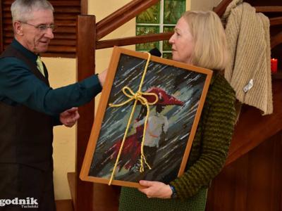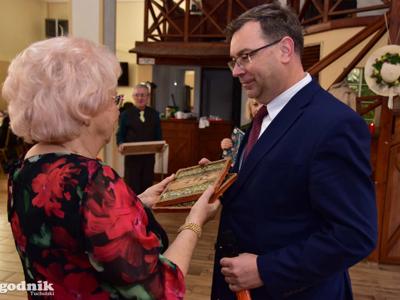 Podziękowania dla włodarza przekazała również Pani Łucja Ryszkowska – Instruktor w Klubie Senior+ w Wielkim Mędromierzu, wręczając na pamiątkę anioły wykonane własnoręcznie na zajęciach.