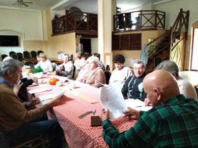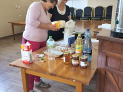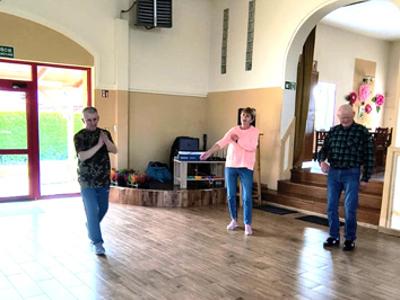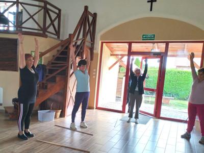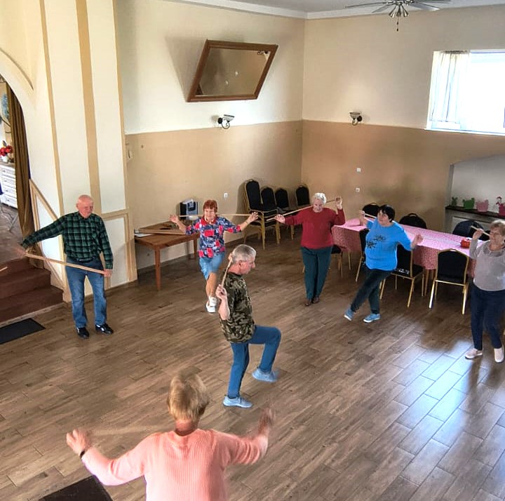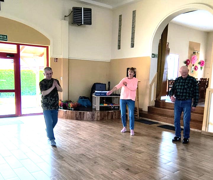 Każdego dnia zajęcia rozpoczynały się gimnastyką poranną dla Seniorów celem poprawy zdrowia fizycznego i psychicznego. Prelegent wyjaśnił zalety porannych ćwiczeń dla Seniorów. Takie ćwiczenia niosą ze sobą wiele korzyści. Mogą poprawić ogólny stan zdrowia, zwiększyć mobilność i nadać pozytywny ton całemu dniu. Należy pamiętać, że ciało potrzebuje pierwszej dawki ruchu, by przygotować się na resztę dnia. Takie ćwiczenia poprawiają nastrój, krążenie krwi, zwiększają poziom energii, poprawiają elastyczność stawów, równowagi oraz mają wpływ na ciężar ciała organizmu. Podczas warsztatów Seniorzy sami przygotowywali sobie posiłki. Warzywa i owoce – to główne składniki posiłków. Seniorzy wykorzystywali istniejący sprzęt w Klubie i przyrządzali soki owocowo – warzywne. Podczas przerw piekli gofry do kawy i herbaty. Ogromnym zainteresowaniem cieszyły się zajęcia związane z nauką tańca. Dla każdego człowieka to forma ruchu łącząca elementy pewnego rodzaju sztuki i sportu, to ekspresja. Taniec pełni również funkcję terapeutyczną, redukuje stres i poprawia nastrój. Seniorzy uczyli się tańców oraz realizowali program treningowy łączący dynamiczny taniec z aerobikiem. Zajęcia odbywały się w rytmie energicznej muzyki, proste kroki dały możliwość naśladowania każdemu uczestnikowi. Trening obejmował rozgrzewkę, serie prostych choreografii tanecznych i rozciągania ciała na koniec ćwiczeń. W repertuarze były też tańce ludowe. Podczas warsztatów Seniorzy uczestniczyli w muzykoterapii. Umieją zaśpiewać swój hymn Seniora z Mędromierza, wiele utworów pasujących do biesiad, czy płonącego ogniska.