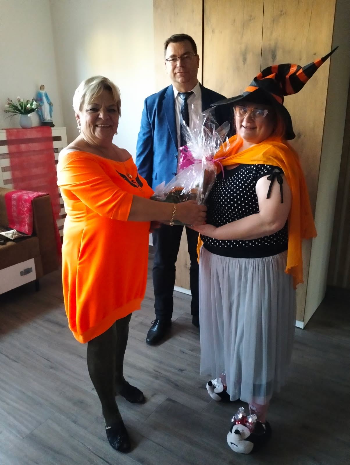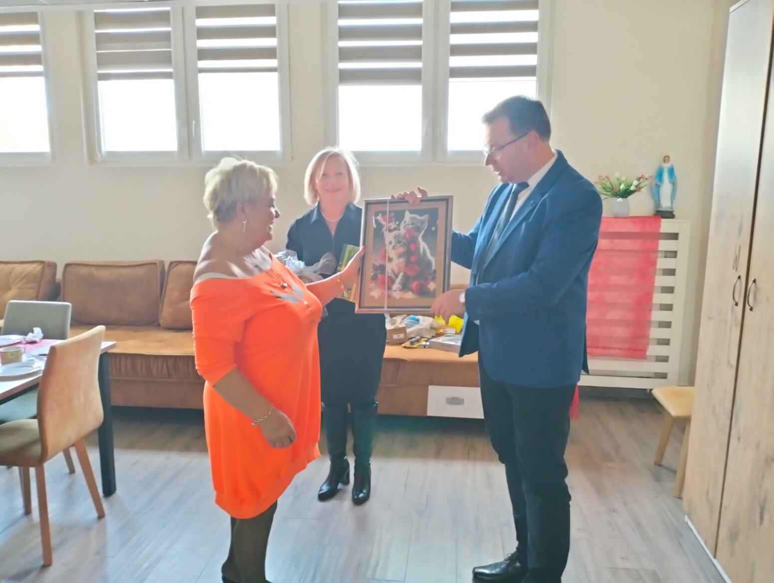 W piątek – 31.10.2025 r. minął dokładnie rok, kiedy Rodzinny Dom Pomocy w Wielkim Mędromierzu prowadzi Pani Elżbieta Danecka. Usługi opiekuńcze i bytowe świadczone są całodobowo dla nie mniej niż trzech i maksymalnie ośmiu zamieszkujących wspólnie osób wymagających wsparcia w formie całodobowej opieki. Życzenia prowadzącej i całej kadrze oraz wolontariuszom z okazji rocznicy złożyli: Pan Ireneusz Kucharski - Wójt Gminy Gostycyn, Pani Dorota Gromowska – Zastępca Wójta, Kierownik GOPS Gostycyn, Pani Katarzyna Bronikowska – Dyrektor DPS Wysoka, Radny Gminy Gostycyn Pan Grzegorz Lorczak oraz przedstawiciel firmy zaopatrujący Rodzinny Dom w środki opatrunkowe – higieniczne. Błogosławieństwa udzielił wszystkim obecnym ks. Proboszcz Sławomir Kunka. Mieszkańcy Rodzinnego Domu wspólnie z gośćmi zjedli tradycyjnie tort urodzinowy upieczony przez samą prowadzącą. Ważne abyśmy potrafili odnaleźć motywy radości w najtrudniejszych chwilach życia. Kadra Rodzinnego Domu zadbała o artystyczną oprawę uroczystości i radośnie witała gości.