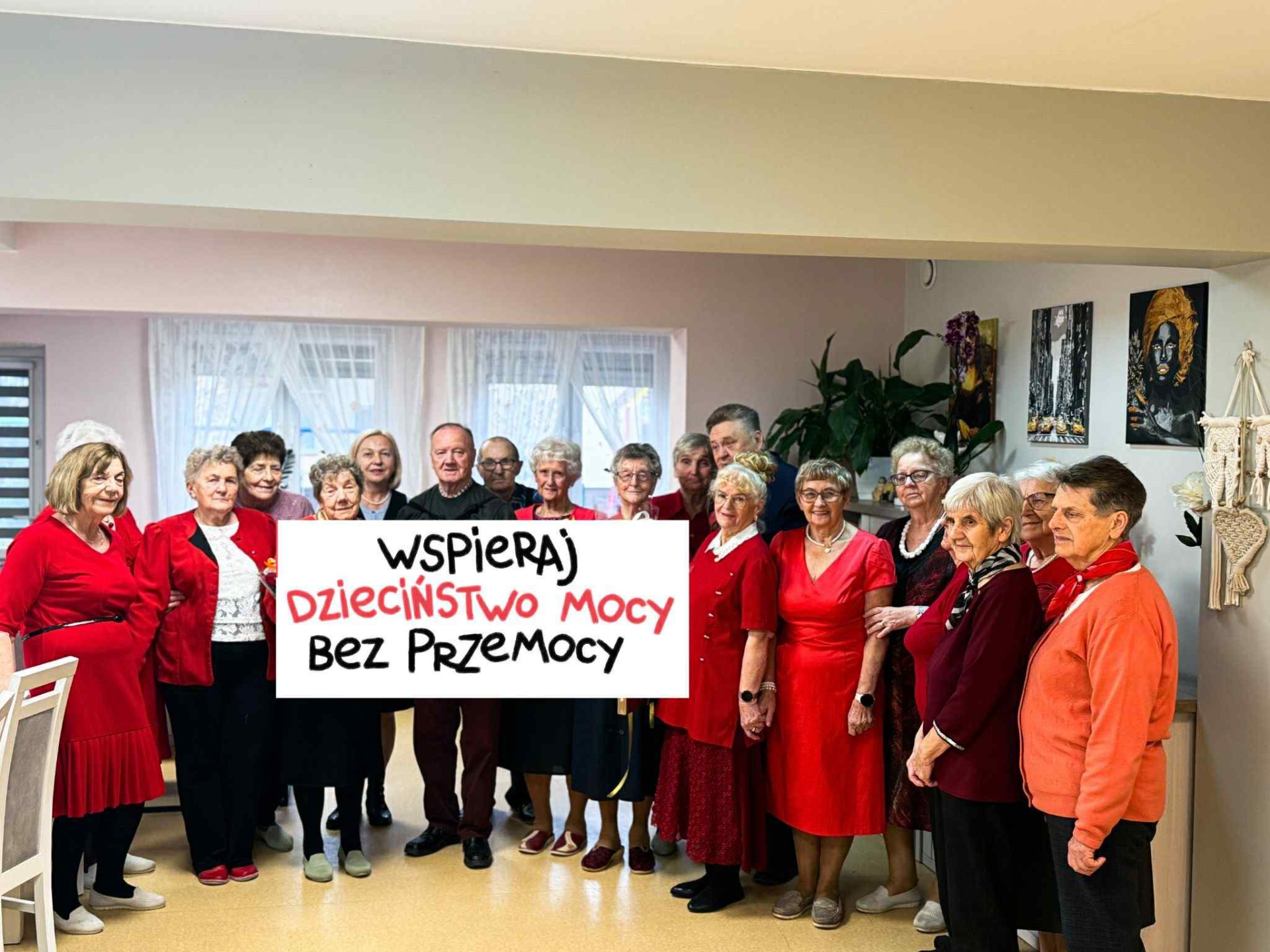 To dzisiaj 19 listopada 2025 r. – podczas Międzynarodowego Dnia Przeciwdziałania Przemocy z całą Polską zaświeciliśmy na czerwono. Może symbolicznie, ale nasze ręcznie wykonane informacje i plakaty mają swoją moc! Dziękuję Pracownikom mojego Ośrodka, przede wszystkim Jagodzie Fabich, Katarzynie Ziemey, Małgorzacie Lewandowskiej i Michałowi Wielandt, Barbarze Góreckiej oraz Paulinie Weltrowskiej za pomoc w akcji. Bardzo dziękuję moim Seniorom z Dziennego Domu Senior+ w Gostycynie za przesłanie, że pięknie można żyć bez przemocy.