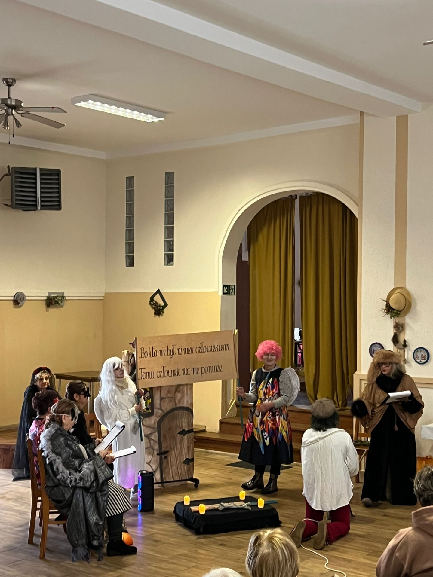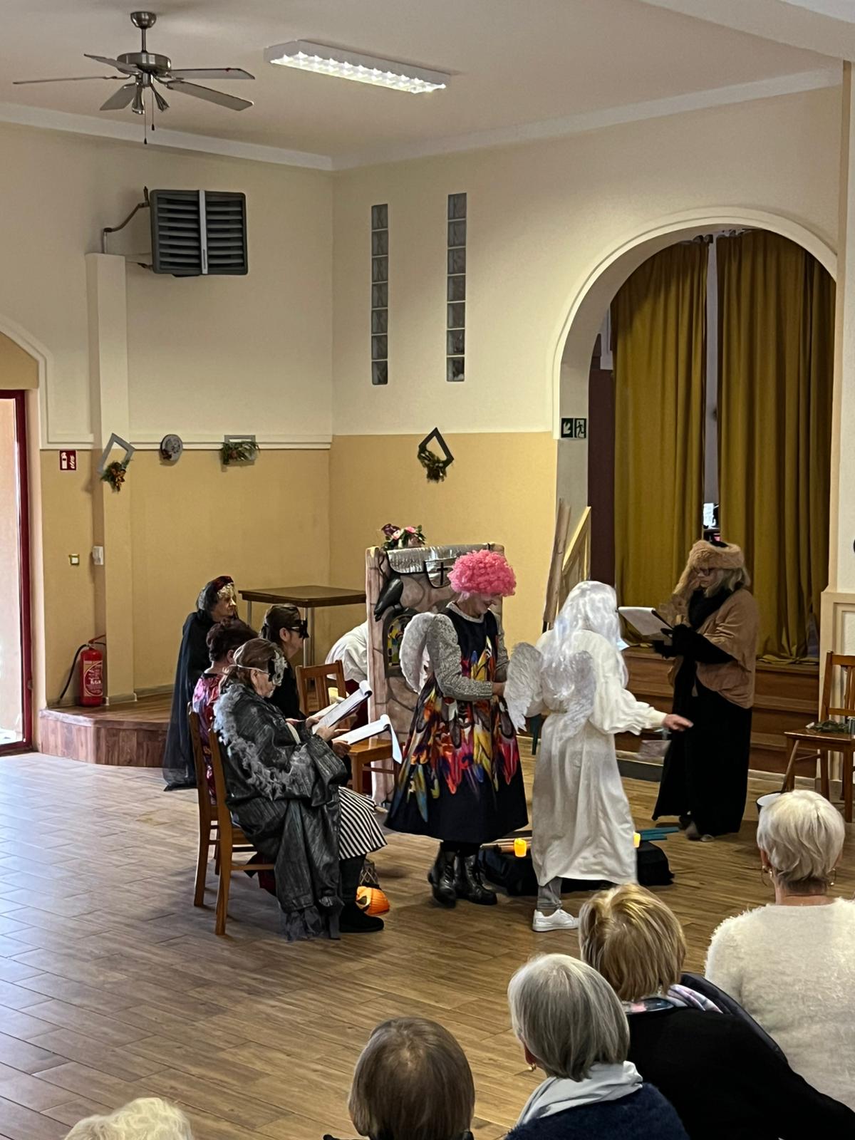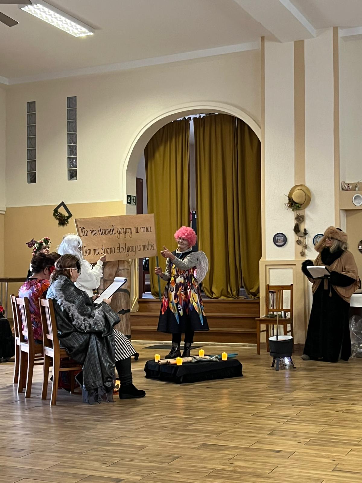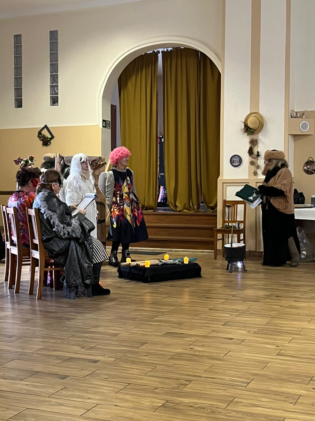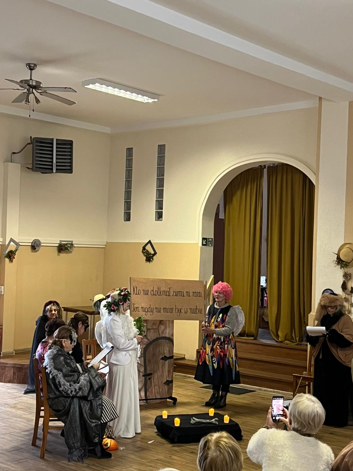 Wszyscy i wszędzie czcimy poetów. Wznosimy im pomniki; w poświęconych im muzeach gromadzimy wszystko, co związane jest z ich życiem i twórczością. Najczęstszym jednak, najbardziej naturalnym, a zarazem najtrwalszym wyrazem kultu, który dla nich żywimy, są nieprzeliczone wydania ich dzieł, które do dzisiaj są dla nas wskazówką i drogowskazem. Klub Senior+ w Wielkim Mędromierzu podczas warsztatów 2 grudnia 2025 r. obejrzał fragmenty „Dziadów” Adama Mickiewicza, w wykonaniu zaprzyjaźnionej grupy 12 osób z Iwca. Seniorów prowadzi Pani Stanisława Iwicka. To duchy przodków w utworze Wieszcza prowadzą nadprzyrodzoną katechezę, dzięki której oglądający mogli sobie przyswoić dwie chrześcijańskie prawdy. Najpierw, że modlitwa i wola żywych przyczyniają się do uporządkowania naszych spraw; potem, że czas jest próbą, z której człowiek zostanie rozliczony. Czas człowieka jest cierpieniem, współczuciem i miłością – a jeśli tak nie jest? – To zmarnowane chwile! Fragment przedstawienia pokazał Seniorom fundamentalne przesłanie ”By po śmierci uzyskać zbawienie - w doczesnym życiu należy kochać, współczuć i cierpieć.”