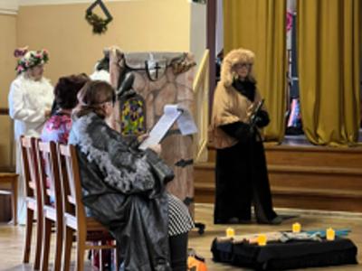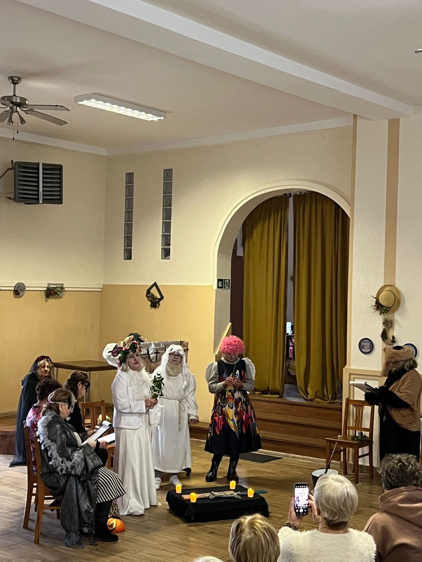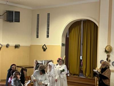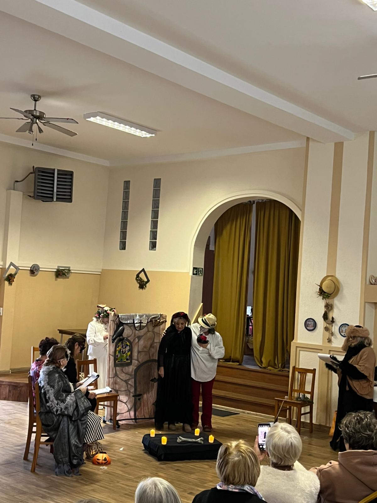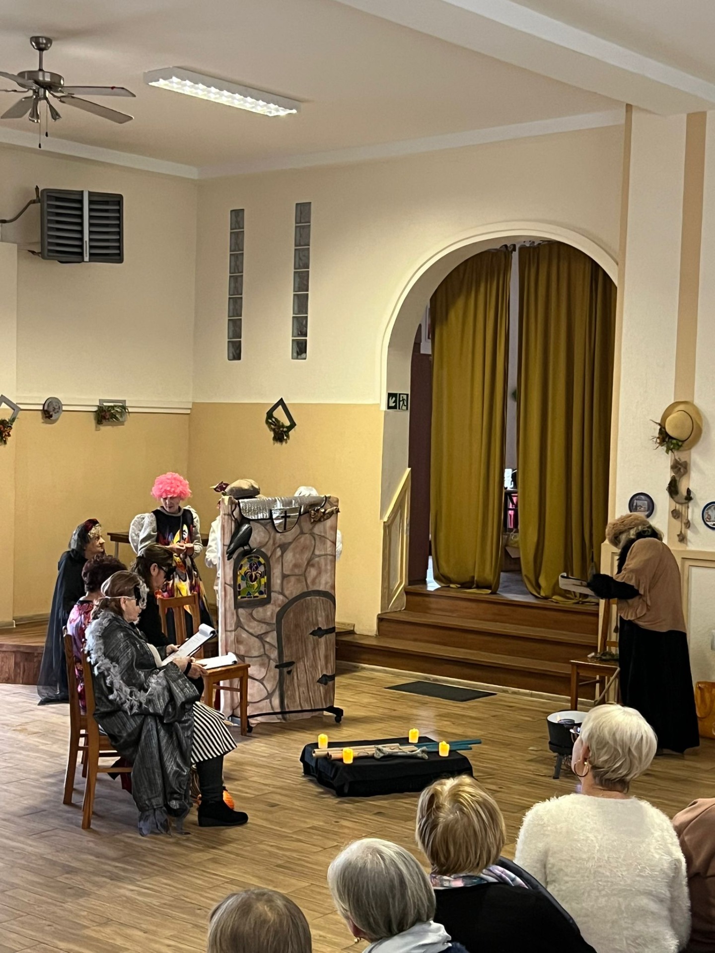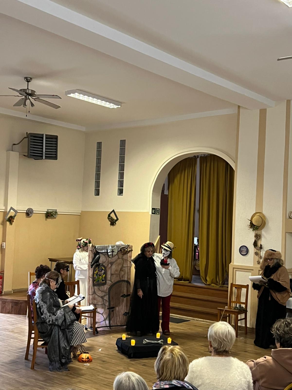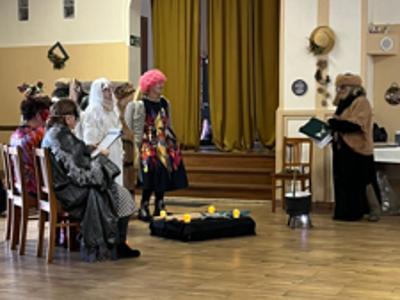 Wszyscy i wszędzie czcimy poetów. Wznosimy im pomniki; w poświęconych im muzeach gromadzimy wszystko, co związane jest z ich życiem i twórczością. Najczęstszym jednak, najbardziej naturalnym, a zarazem najtrwalszym wyrazem kultu, który dla nich żywimy, są nieprzeliczone wydania ich dzieł, które do dzisiaj są dla nas wskazówką i drogowskazem. Klub Senior+ w Wielkim Mędromierzu podczas warsztatów 2 grudnia 2025 r. obejrzał fragmenty „Dziadów” Adama Mickiewicza, w wykonaniu zaprzyjaźnionej grupy 12 osób z Iwca. Seniorów prowadzi Pani Stanisława Iwicka. To duchy przodków w utworze Wieszcza prowadzą nadprzyrodzoną katechezę, dzięki której oglądający mogli sobie przyswoić dwie chrześcijańskie prawdy. Najpierw, że modlitwa i wola żywych przyczyniają się do uporządkowania naszych spraw; potem, że czas jest próbą, z której człowiek zostanie rozliczony. Czas człowieka jest cierpieniem, współczuciem i miłością – a jeśli tak nie jest? – To zmarnowane chwile! Fragment przedstawienia pokazał Seniorom fundamentalne przesłanie ”By po śmierci uzyskać zbawienie - w doczesnym życiu należy kochać, współczuć i cierpieć.”