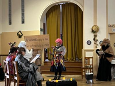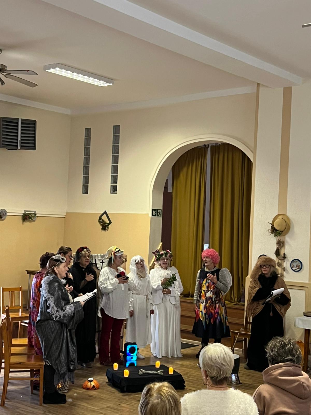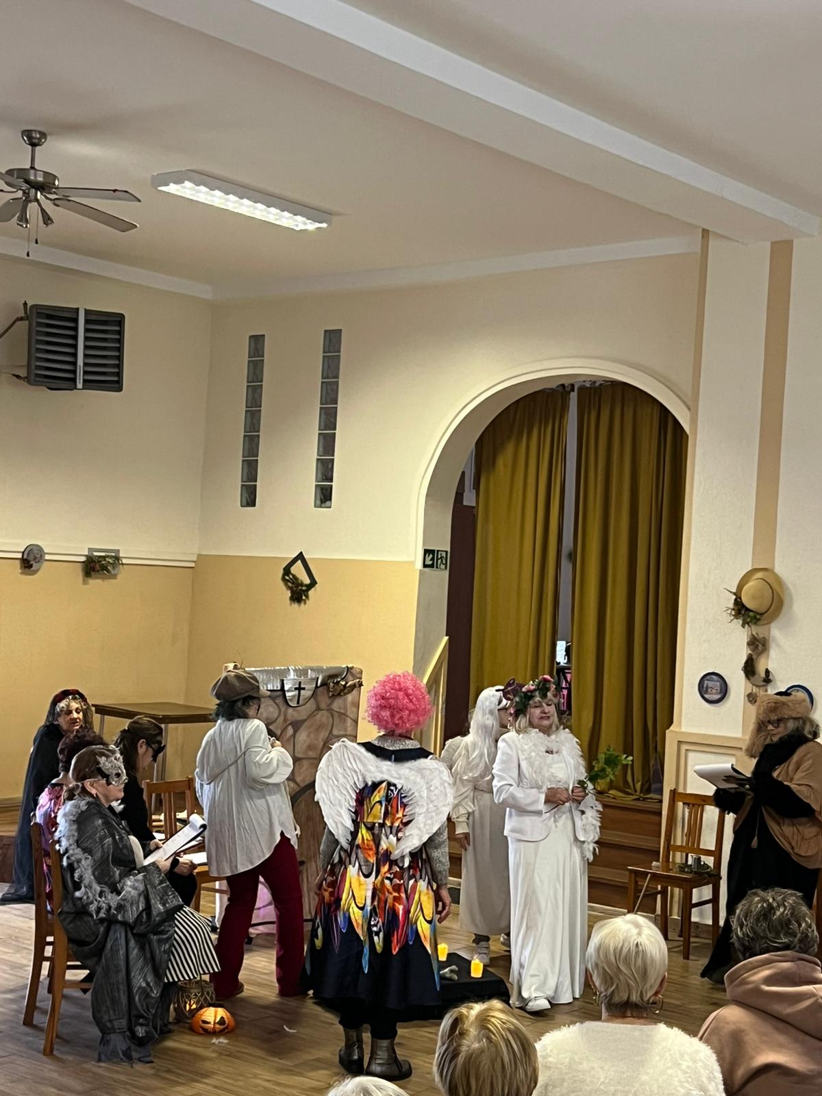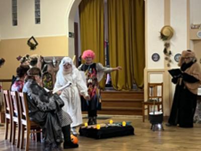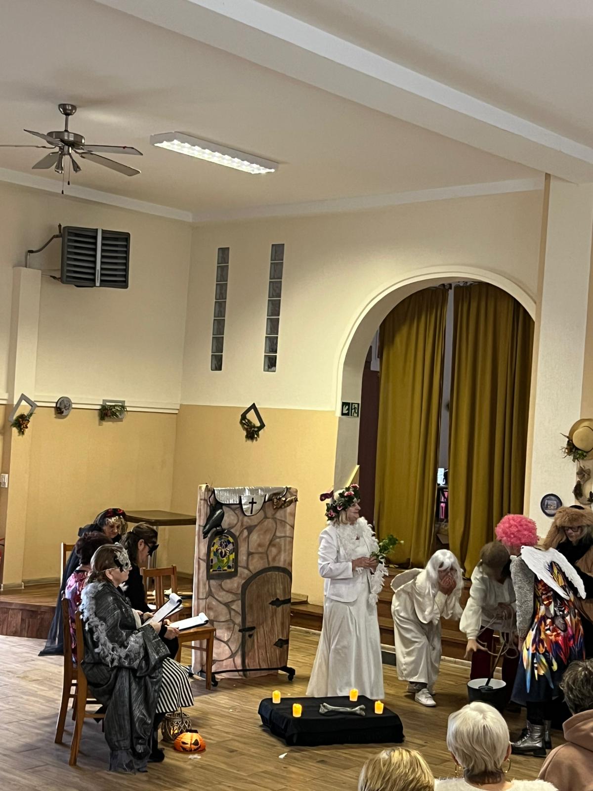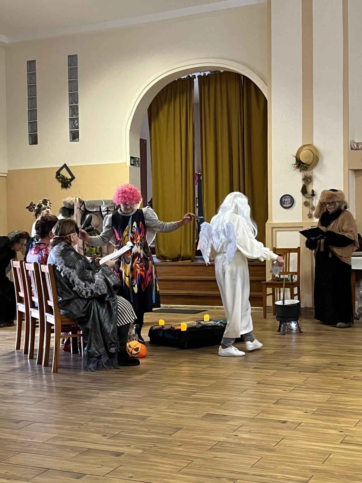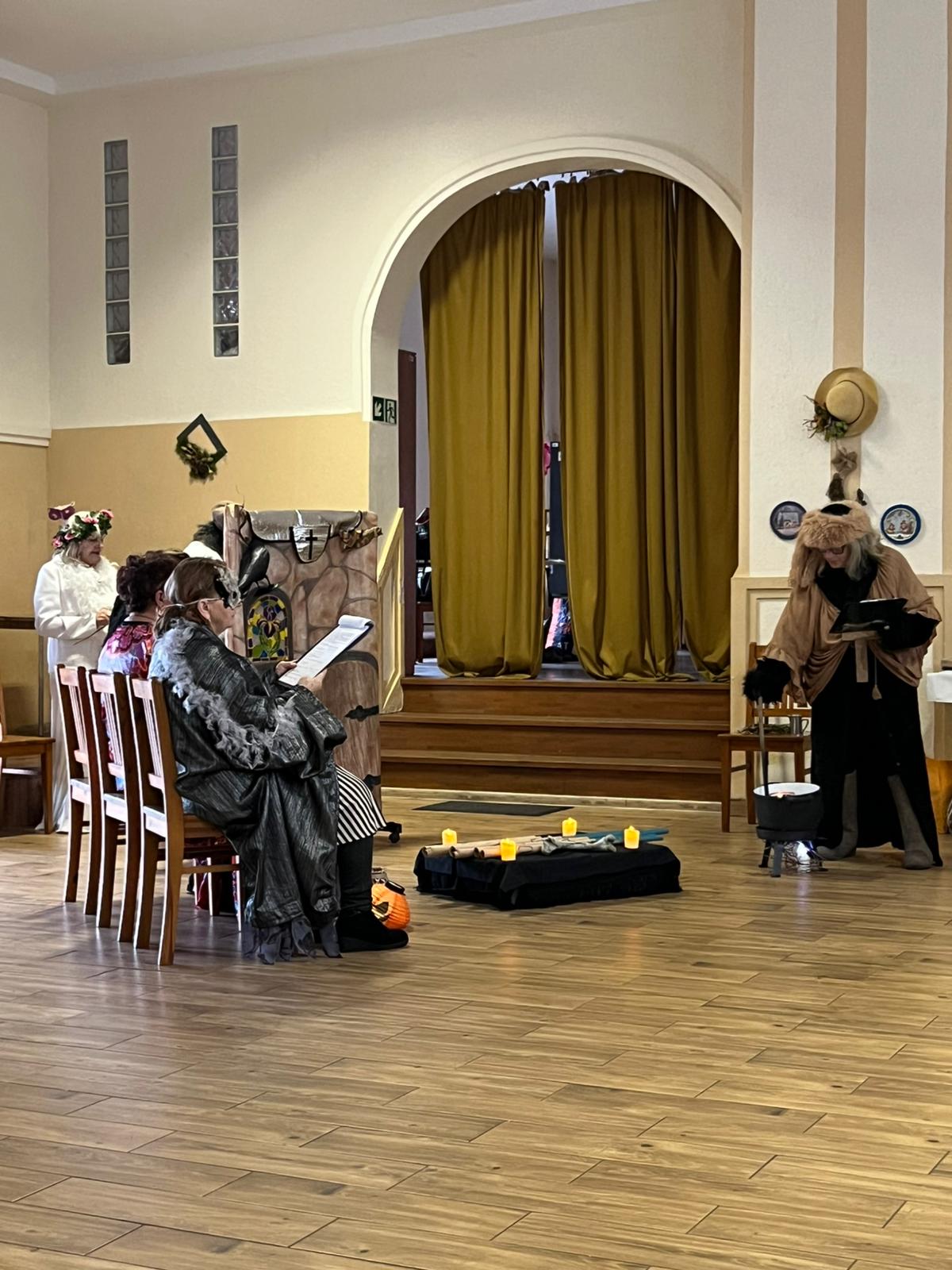 Wszyscy i wszędzie czcimy poetów. Wznosimy im pomniki; w poświęconych im muzeach gromadzimy wszystko, co związane jest z ich życiem i twórczością. Najczęstszym jednak, najbardziej naturalnym, a zarazem najtrwalszym wyrazem kultu, który dla nich żywimy, są nieprzeliczone wydania ich dzieł, które do dzisiaj są dla nas wskazówką i drogowskazem. Klub Senior+ w Wielkim Mędromierzu podczas warsztatów 2 grudnia 2025 r. obejrzał fragmenty „Dziadów” Adama Mickiewicza, w wykonaniu zaprzyjaźnionej grupy 12 osób z Iwca. Seniorów prowadzi Pani Stanisława Iwicka. To duchy przodków w utworze Wieszcza prowadzą nadprzyrodzoną katechezę, dzięki której oglądający mogli sobie przyswoić dwie chrześcijańskie prawdy. Najpierw, że modlitwa i wola żywych przyczyniają się do uporządkowania naszych spraw; potem, że czas jest próbą, z której człowiek zostanie rozliczony. Czas człowieka jest cierpieniem, współczuciem i miłością – a jeśli tak nie jest? – To zmarnowane chwile! Fragment przedstawienia pokazał Seniorom fundamentalne przesłanie ”By po śmierci uzyskać zbawienie - w doczesnym życiu należy kochać, współczuć i cierpieć.”